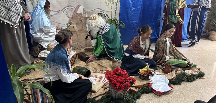 Siguiendo la tradición, el grupo de 4º de ESO nos ha preparado una representación del belén que han recibido con cariño y villancicos todos las clases del colegio.